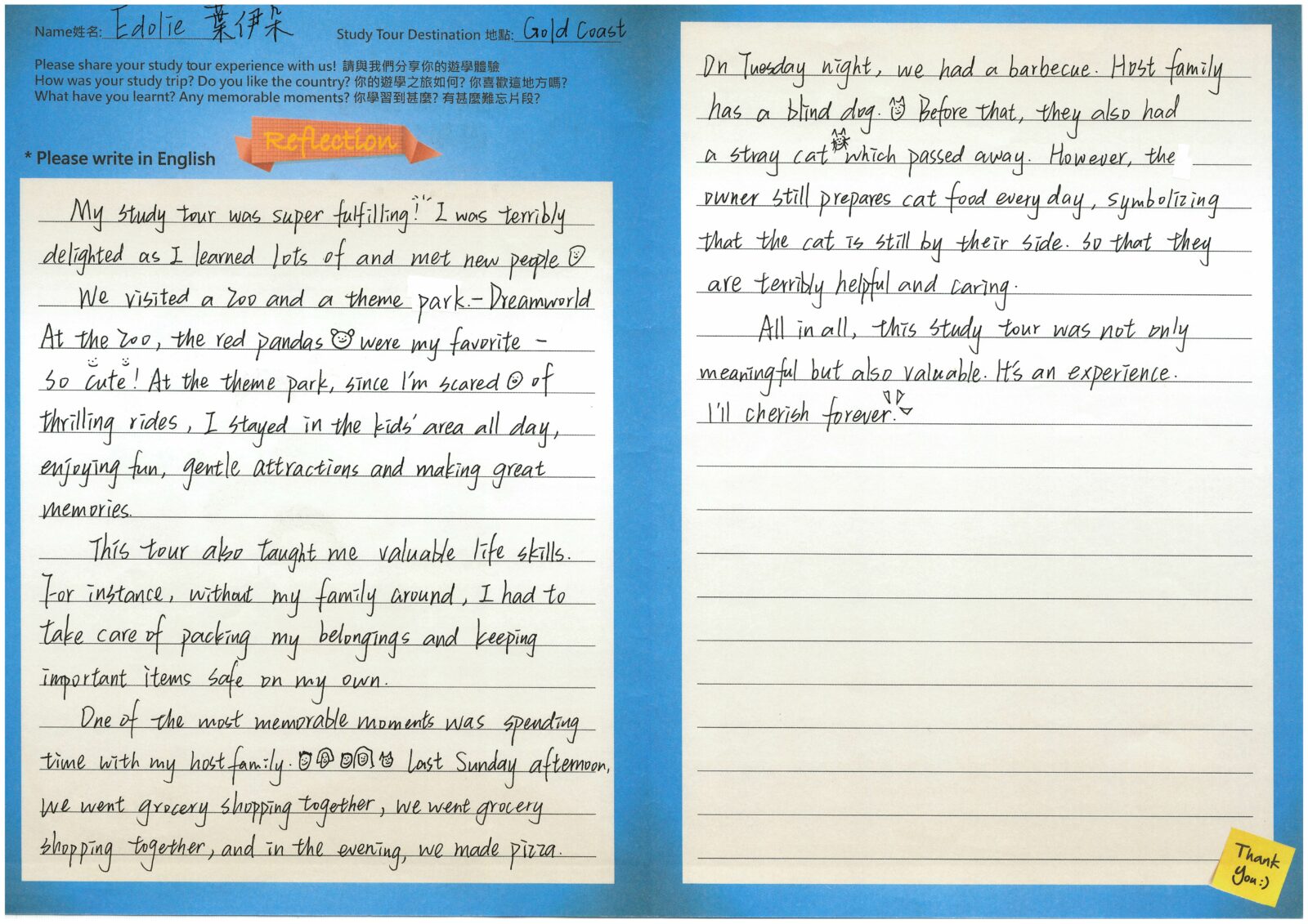 HHCKLA Buddhist Leung Chik Wai College Queensland, Australia 遊學分享 KWAN Hei Ting, Kendis YE Yiduo, Edolie