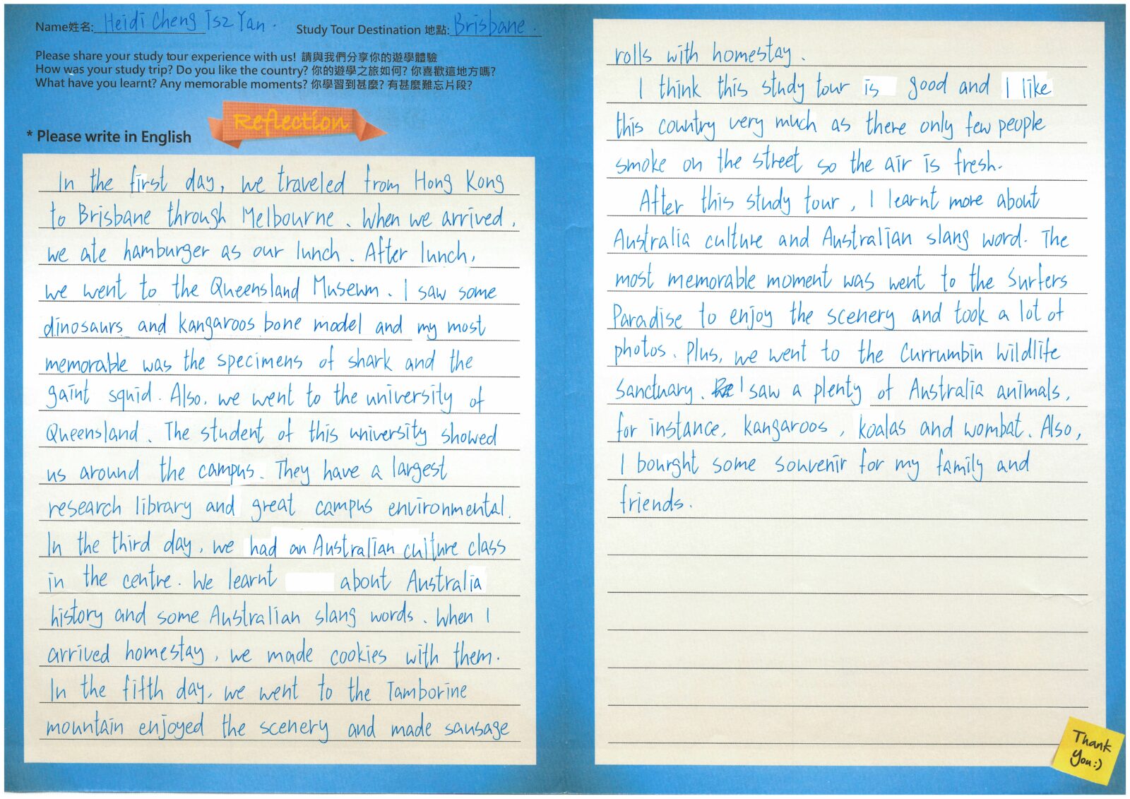 Sai Kung Sung Tsun Catholic School (Secondary Section) Brisbane & Gold Coast, Australia 遊學分享 CHAN Ho Yuet CHENG Tsz Yan, Heidi LI Sze Wing, Tiffany
